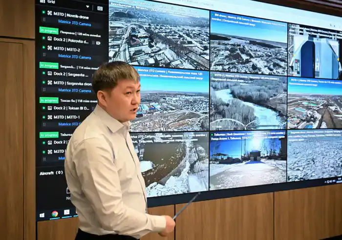 Дроны обеспечивают круглосуточный мониторинг паводковой обстановки в реальном времени. В работе задействовано 8 дронов, которые наблюдают за ключевыми точками по руслу реки Есиль в 5 районах и вокруг Петропавловска, включая Сергеевское водохранилище.