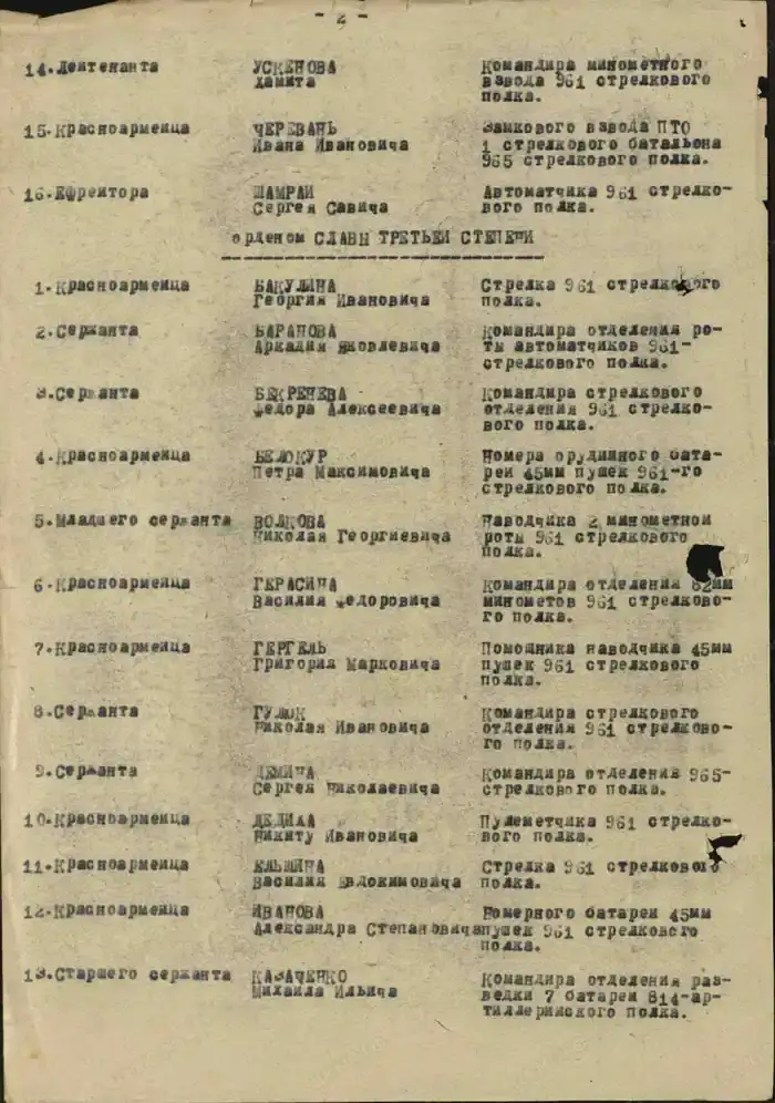 Вскоре после окончания Великой Отечественной войны дивизия была расформирована. Она стала Ярцевской Краснознаменной ордена Суворова II степени, а 961-й стрелковый полк получил наименование Бранденбургского Краснознаменного ордена Суворова III степени, делится карагандинец.