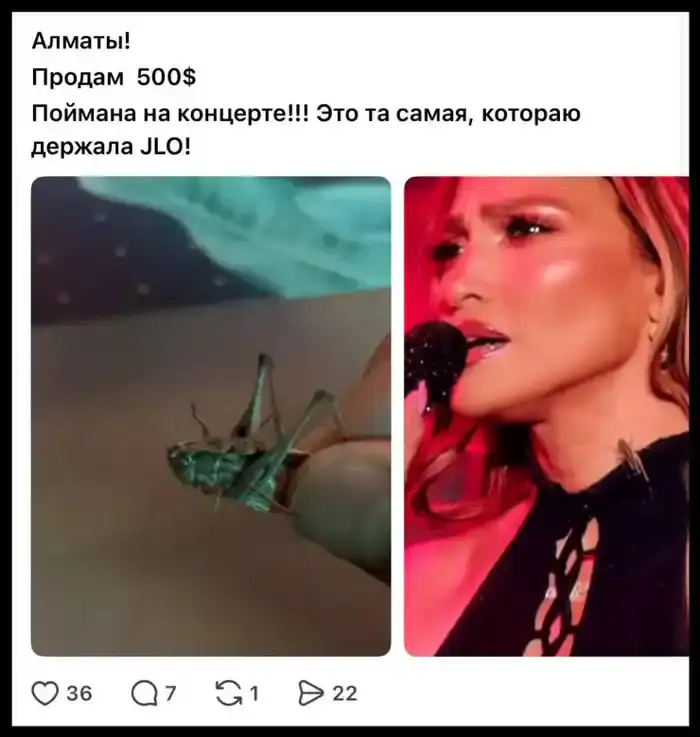Ситуация вызвала волну мемов в Казахстане. Некоторые пользователи предложили "продать" кузнечика за 500 долларов (около 269 500 тенге), а другие предложили более креативные варианты бартера: