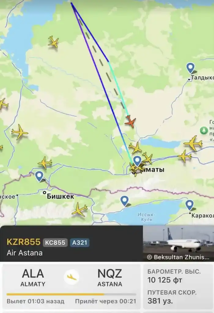 Спустя некоторое время капитан объявил, что ситуация стабилизировалась и самолет возвращается в Алматы.