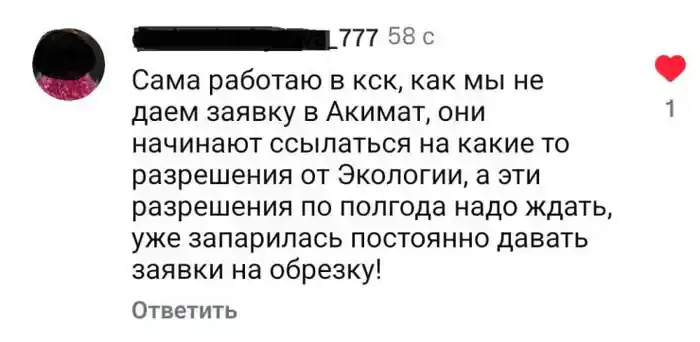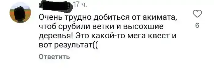 "Однако по данному дереву обращения в текущем году отсутствовали, и предпосылок для проведения обрезки не имелось, так как дерево зелёное и находилось в удовлетворительном состоянии, без признаков усыхания или аварийности", - добавили в акимате.