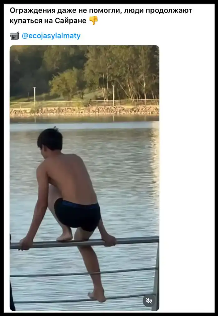 "Ограждения даже не помогли, люди продолжают купаться на Сайране", - говорится в публикации.