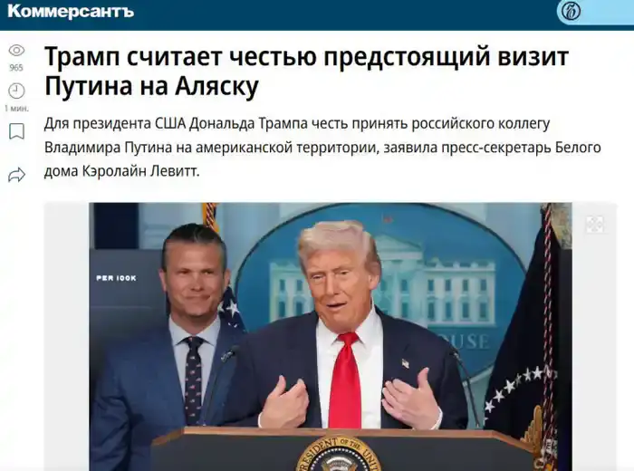 Со ссылкой на Белый дом передают сообщения о том, что Трамп считает честью визит Путина на Аляску.