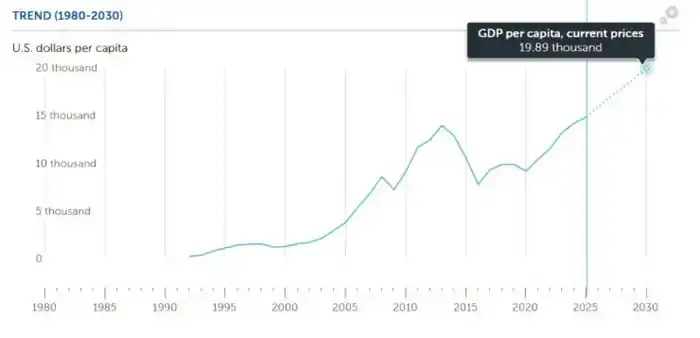 По обновленным данным Международного валютного фонда (МВФ) на апрель этого года, уровень ВВП Казахстана на душу населения достиг 14,77 тысячи долларов.