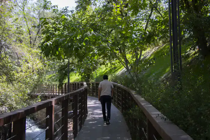 Благоустроенный терренкур заметно преобразился. Теперь даже в будние дни, особенно в обеденное время, здесь гуляет много алматинцев. Семьи с маленькими детьми, люди с собаками — все находят здесь место для отдыха.