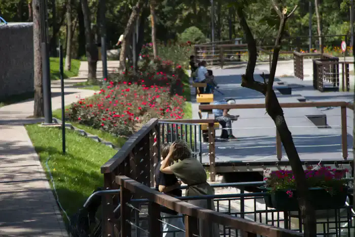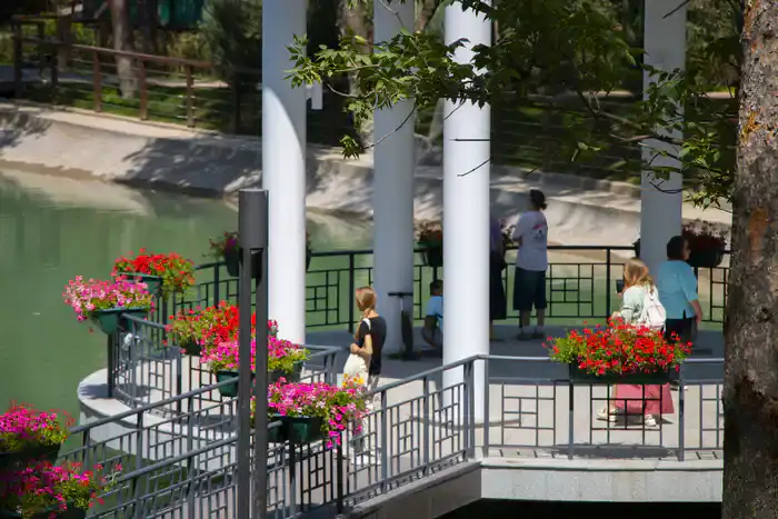 "На более чем 4 гектарах создан современный ухоженный парк с новыми пешеходными маршрутами, расширенной тропой здоровья и деревянным мостом с живописными видами на реку. Водоем был укреплен, очищен и благоустроен. На берегу появилась сцена для выступлений, а напротив — амфитеатр под открытым небом", ― говорилось в сообщении.