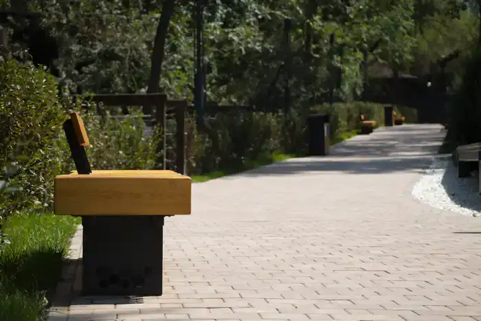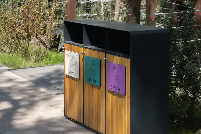 Новые скамейки выглядят стильно, хотя их эргономичность вызывает вопросы. Также установлены современные экологичные урны для раздельного сбора мусора.