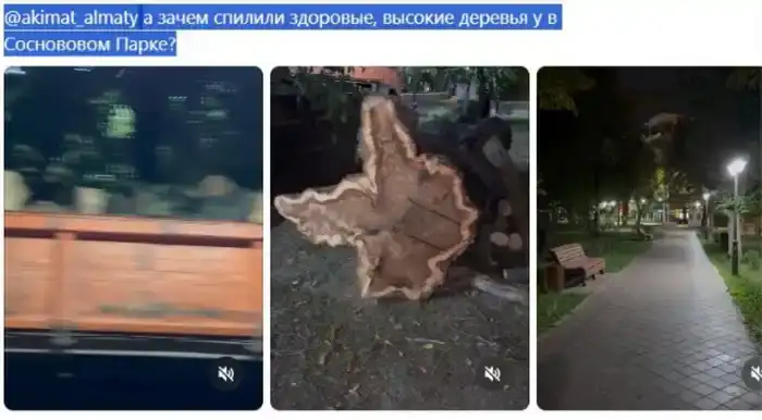 Акимат Алмалинского района прокомментировал ситуацию, указав, что деревья были спилены в рамках программы по сносу аварийных насаждений. По информации местного исполнительного органа, жители сквера не раз жаловались на состояние деревьев.