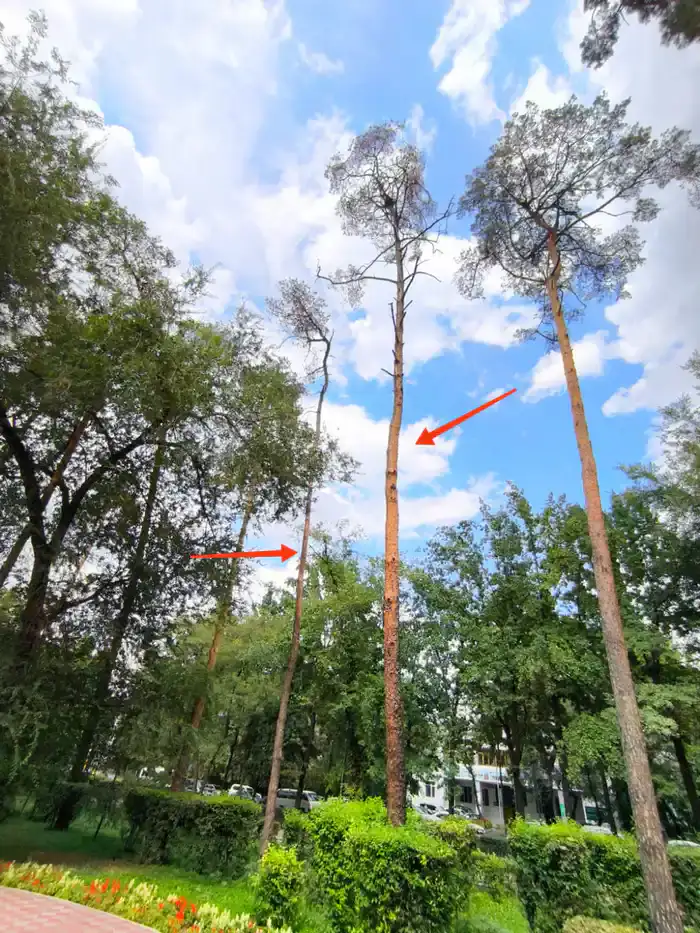 "Было установлено, что на территории сквера 'Карагайлы' расположено 21 сухостойное дерево. Из них: 12 хвойных и 9 лиственных пород, которые полностью высохли и представляют угрозу для безопасности жителей и объектов инфраструктуры. По результатам оценки их состояния данные деревья подлежат немедленному сносу во избежание аварийных ситуаций", - сообщили в акимате.