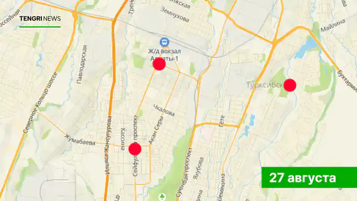 - районе улицы Кажымукана, проспекта Назарбаева и бульвара Мендикулова.