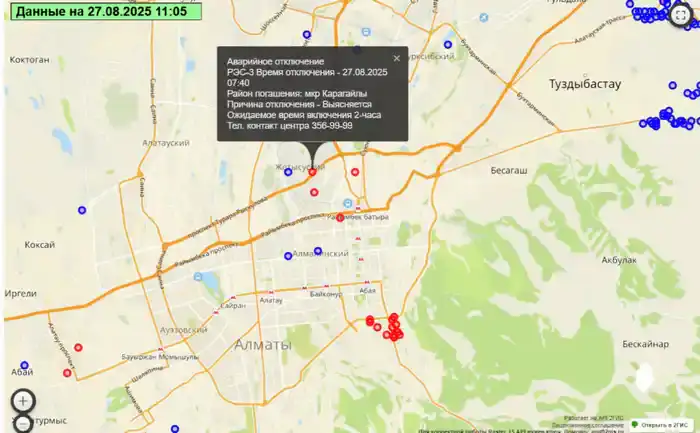 На сайте "Алатау жарық компаниясы" доступна интерактивная карта, где можно посмотреть географию отключения электроэнергии.
