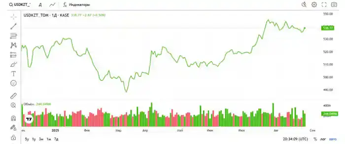 Официальный курс Национального банка на 27 августа составляет 533,87 тенге за доллар.