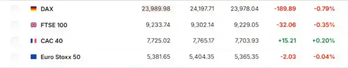 - Немецкий DAX и Euro Stoxx 50 снизились из-за слабых экономических данных и политической нестабильности в Германии, что усилило опасения инвесторов.