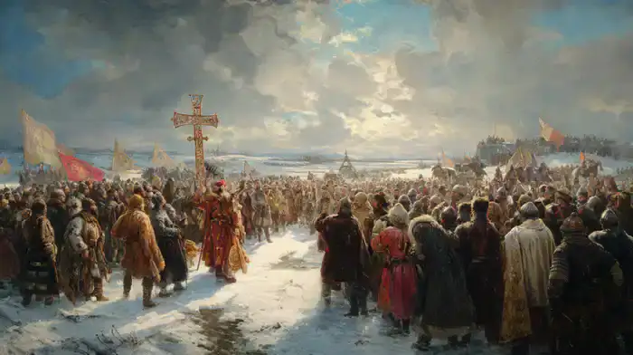 Важной частью российско-украинских отношений являются дискуссии на исторические темы, в частности, о Тринадцатилетней войне в XVII веке. В ходе этой войны происходила борьба за украинские земли с участием Московского государства, Османской империи, Польши и самих украинцев. В начале войны украинцы сохраняли свою субъектность, но к концу она была фактически потеряна, что привело к разделению украинцев на две части – на правом и левом берегах Днепра.
