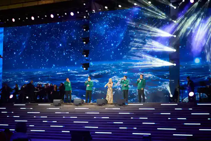 Концерт был посвящен Дню Конституции, и поздравление звучало прямо со сцены.