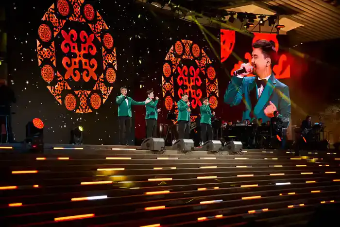 "Мы даем концерт в честь празднования Дня Конституции, поэтому поздравляем от всей души всех казахстанцев с этим очень важным праздником и надеемся, что наш вид поздравления - музыка, голоса, вокал - понравится всем нашим гражданам", - сказали со сцены Mezzo.