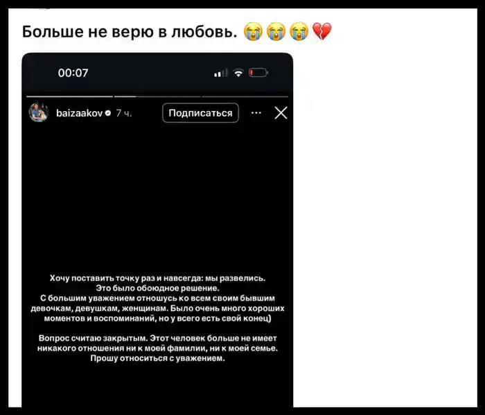 Алихан Байзаков ранее подтвердил развод и ввёл в оборот фразу, ставшую мемом:
