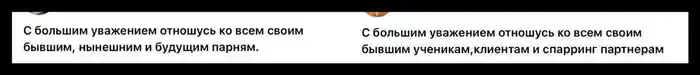 "Мы развелись. Это было обоюдное решение. С большим уважением отношусь ко всем своим бывшим девочкам, девушкам, женщинам. Было много хороших моментов, но у всего есть свой конец. Вопрос считаю закрытым", — заявил блогер.