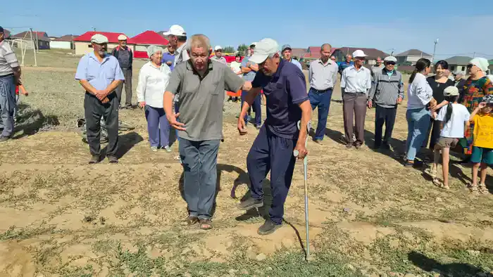 "Когда сухо, еще можно пройти, а когда начнутся дожди — вообще невозможно. Я на костылях специально пришел показать, как тяжело ходить по бездорожью. Мы так радовались, что начали класть асфальт, но всё снова остановилось", — поделился Бахытберген Калбалдинов, инвалид второй группы.