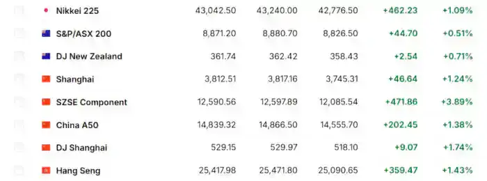 - Фондовые индексы Китая: Shanghai Composite (+1,24%), Hang Seng (+1,43%).