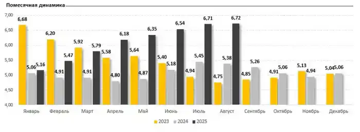 С начала 2025 года российский рубль заметно укрепился: в январе его курс составлял 5,16 тенге, а к августу вырос на 30 процентов и достиг 6,72 тенге. В сентябре он держится на уровне около 6,65 тенге. Несмотря на рост, спроса на рубль в стране нет — обменные пункты фиксируют рекордные объёмы его сдачи.