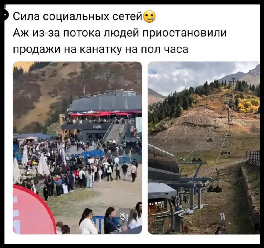 В социальных сетях появилось несколько видео, снятых на Шымбулаке, которые быстро собрали множество репостов. Например, одно из видео было опубликовано 8 сентября.