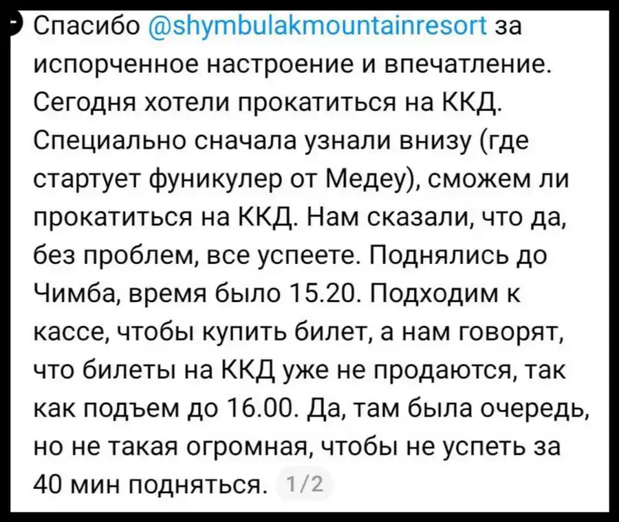 - Канатная дорога Медеу – Шымбулак будет закрыта с 6 по 17 октября.