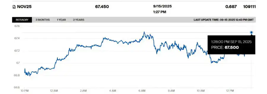 Нефть подорожала из-за геополитической напряжённости и ожиданий на рынке. Цена ноябрьских фьючерсов на нефть марки Brent повысилась на 0,69 процента - до 67,45 доллара за баррель.
