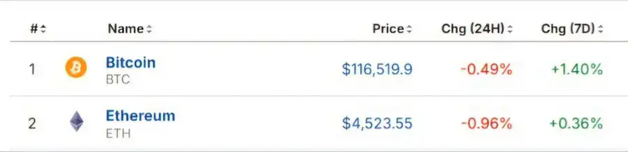 Курс Bitcoin (BTC) снизился на 0,49 процента, а Ethereum (ETH) - на 0,96 процента, составив 4 523,55 доллара за монету. Укрепление доллара делает рискованные активы менее привлекательными, что также приводит к фиксации прибыли на крипторынке после недавнего роста.