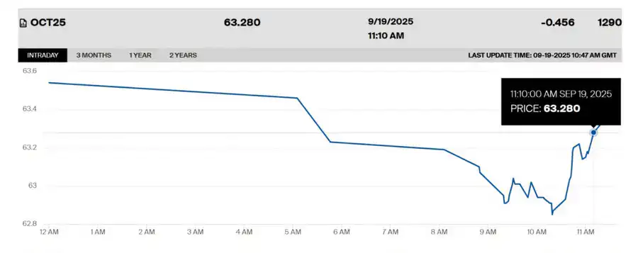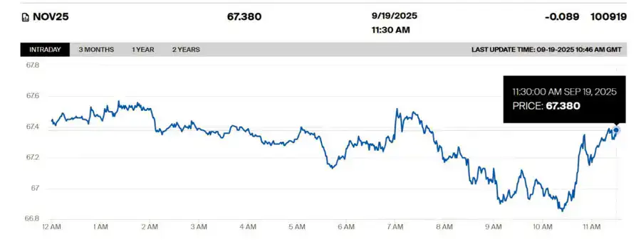 Нефть немного подешевела, в основном из-за опасений по поводу слабого спроса в США. Цена ноябрьских фьючерсов на нефть марки Brent снизилась на 0,09 процента, составив 67,38 доллара за баррель, в то время как октябрьские фьючерсы на нефть марки WTI уменьшились на 0,46 процента до 63,28 доллара за баррель.