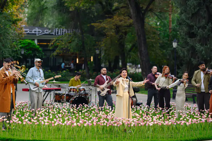 Грандиозный финал ролика – исполнение Розы Рымбаевой. Она исполняет трек в окружении большого количества музыкантов и хористов. Для артистки была придумана и воплощена в реальность большая клумба с пятью тысячами тюльпанов.