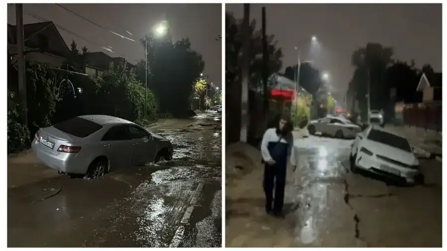 После сильного дождя, который обрушился на город, дорожное полотно на улице Аманжол просело, что привело к повреждению автомобилей. В результате инцидента некоторые машины получили серьёзные повреждения.