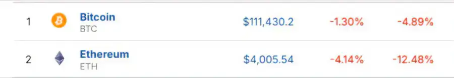 Курс Bitcoin (BTC) подешевел на 1,30 процента, Ethereum (ETH) - на 4,14 процента до 4 005,54 доллара за одну монету. Bitcoin и Ethereum падают из-за сочетания нескольких факторов. Крупные инвесторы активно продают криптовалюту, что приводит к сокращению притока средств, а масштабные ликвидации усугубляют падение. Макроэкономическая неопределенность из-за осторожной позиции ФРС по понижению ставок также снижает привлекательность криптовалют как инвестиций.