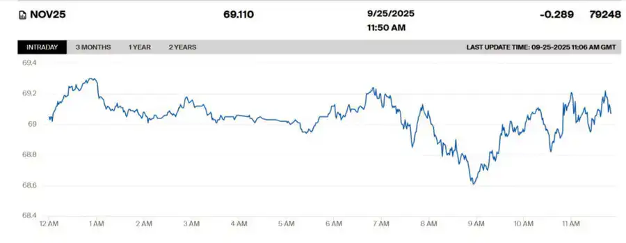 Нефть подешевела, поскольку часть инвесторов зафиксировала прибыль после падения американских фондовых рынков, а также на фоне ожиданий снижения спроса и увеличения поставок нефти из Ирака и Курдистана. Цена ноябрьских фьючерсов на нефть марки Brent на лондонской бирже ICE понизилась на 0,29 процента - до 69,11 доллара за баррель.