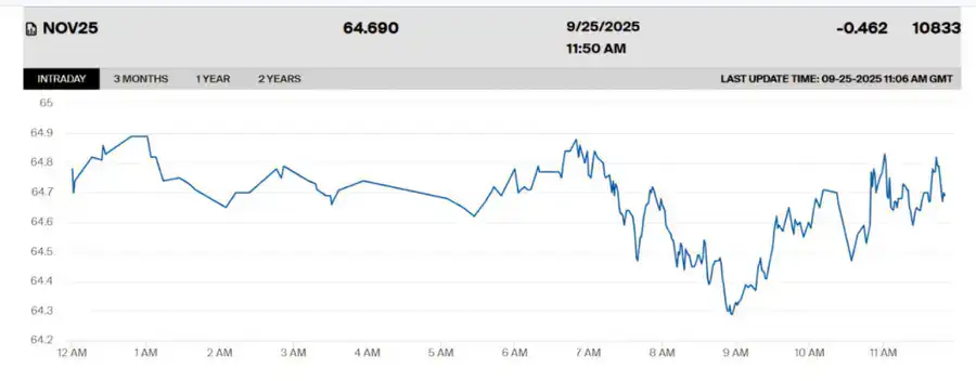 Стоимость ноябрьских фьючерсов на нефть марки WTI уменьшилась на 0,46 процента - до 64,69 доллара за баррель.