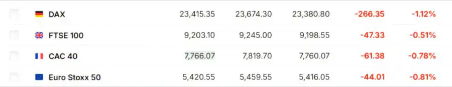 Европейские рынки показали отрицательную динамику после падения индексов на Уолл-стрит, поскольку инвесторы ожидали публикации ключевых экономических данных, способных повлиять на денежно-кредитную политику ФРС. Из основных индексов DAX (-1,12 процента, Германия), FTSE 100 (-0,51 процента, Великобритания), CAC 40 (-0,78 процента, Франция) и Euro Stoxx 50 (-0,81 процента) оказались в минусе.