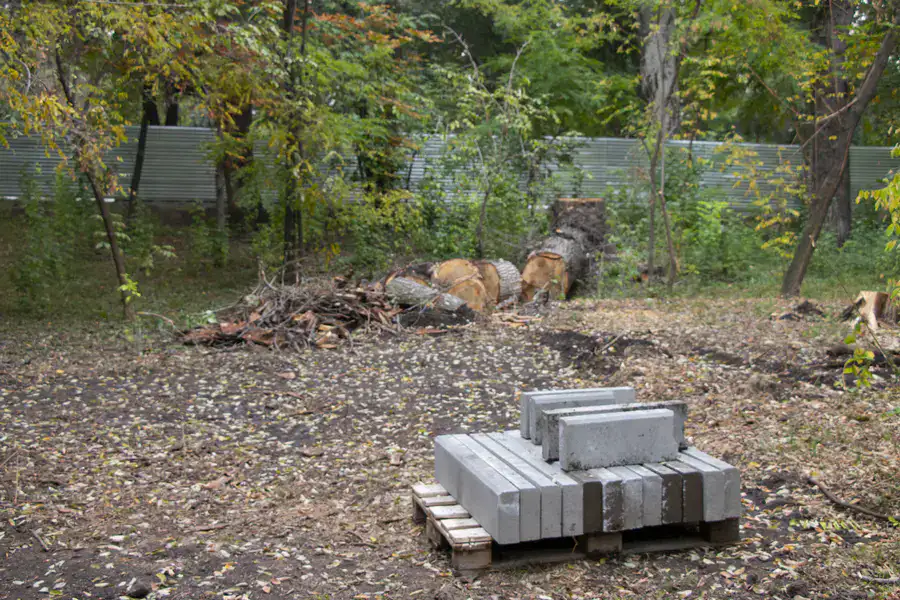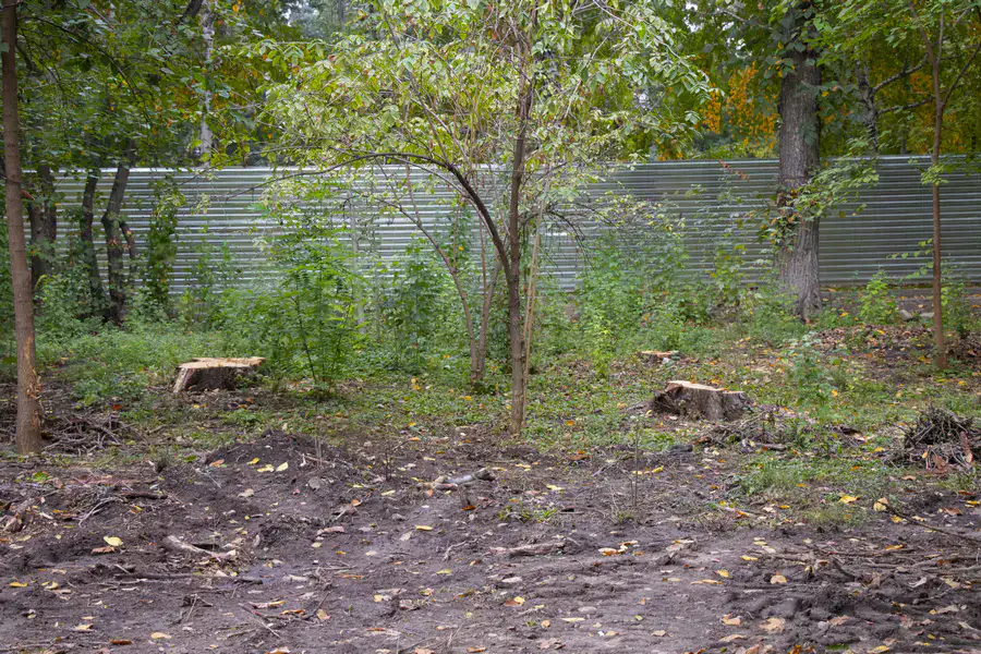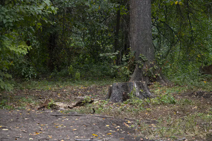 Недалеко от мест, где проводится благоустройство, можно заметить спиленные деревья, которые, судя по виду, были спилены недавно.