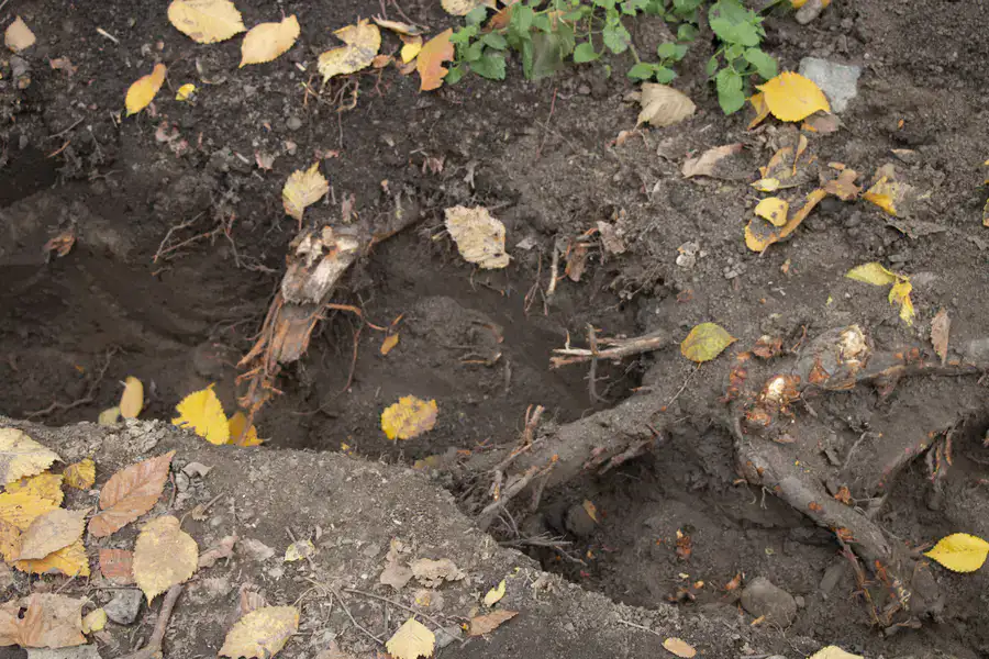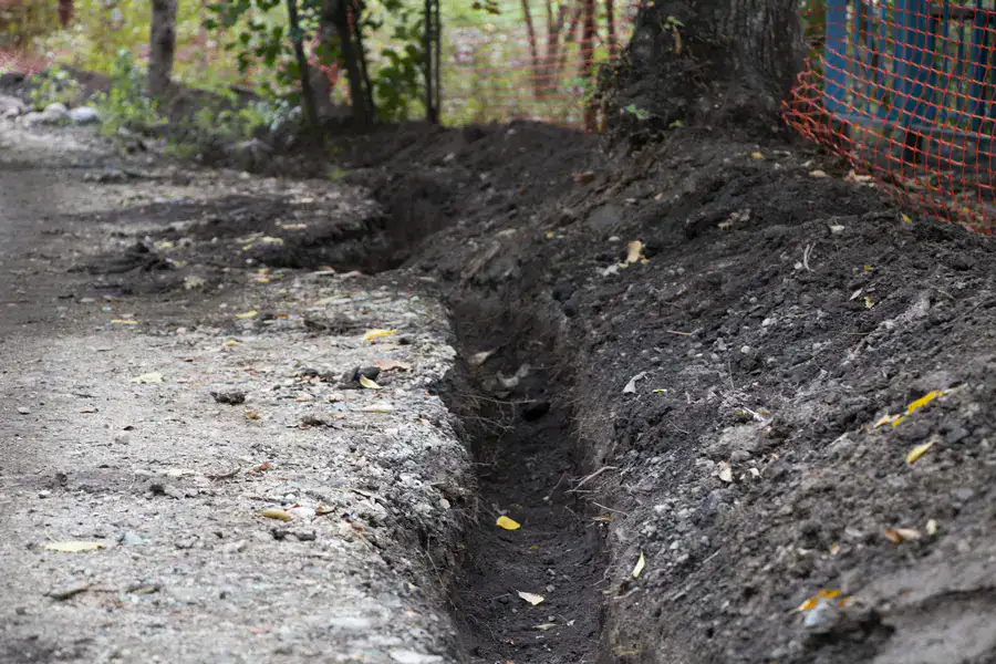 С помощью экскаватора рабочие вырыли траншеи рядом с тропами, стараясь не задевать корни деревьев.