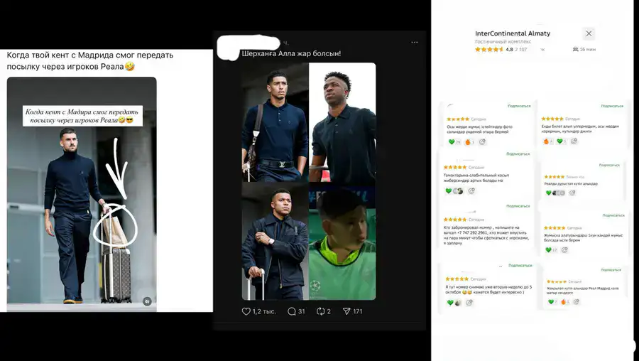 Некоторые фанаты решили пойти ещё дальше. В соцсетях обсуждают случай, когда один из казахстанцев позвонил в отель, где остановился "Реал", и попросил соединить его с Килианом Мбаппе.