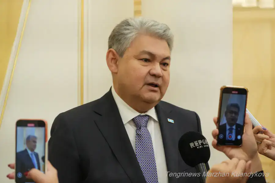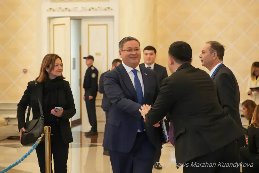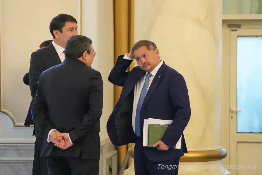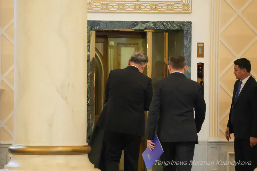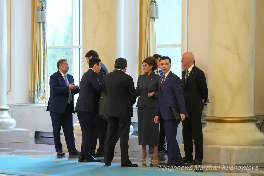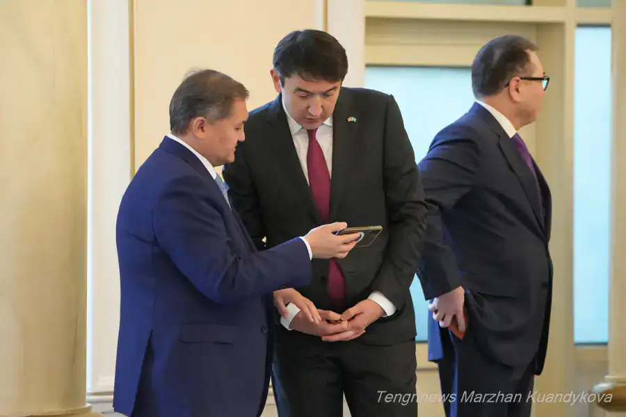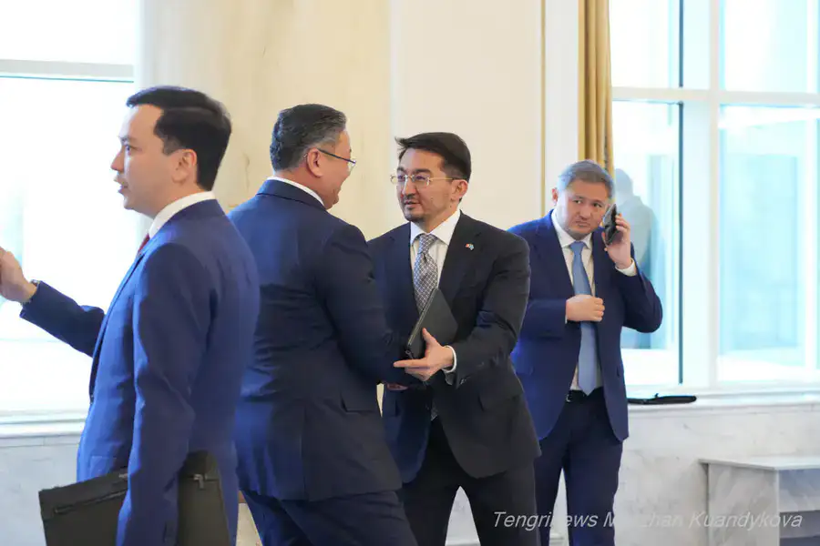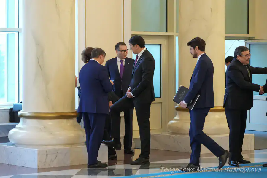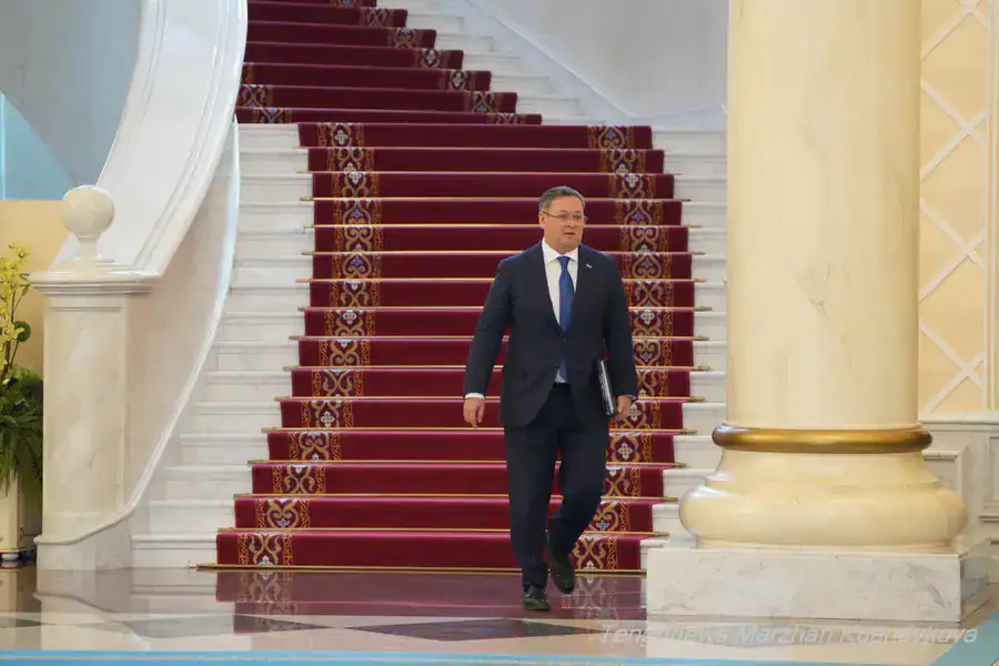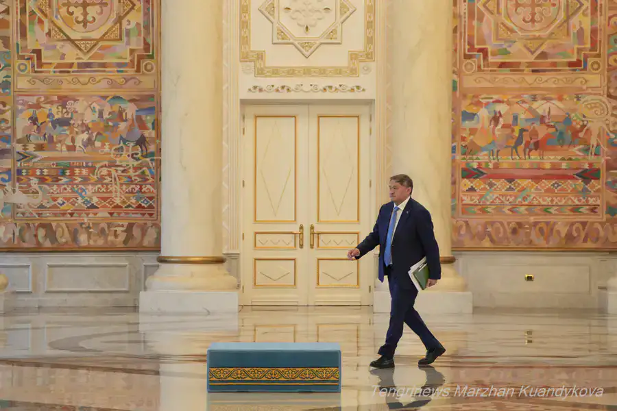 Бывший министр иностранных дел Мурат Нуртлеу спустился в холл по большой лестнице, выглядел спокойным и даже в приподнятом настроении. Он приветствовал всех с улыбкой и общался с Жасланом Мадиевым, который теперь не только министр искусственного интеллекта, но и заместитель премьера.