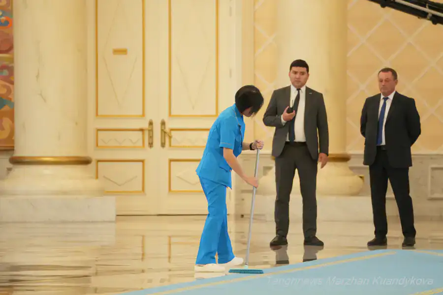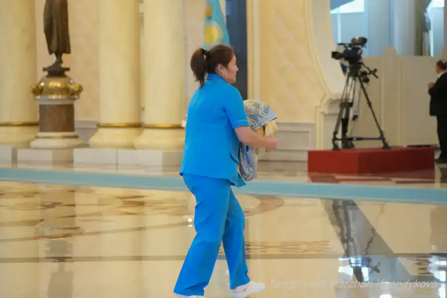 Затем члены казахстанского кабмина выстроились в ряд, и в зал вошел Президент Касым-Жомарт Токаев. Все разговоры моментально стихли.