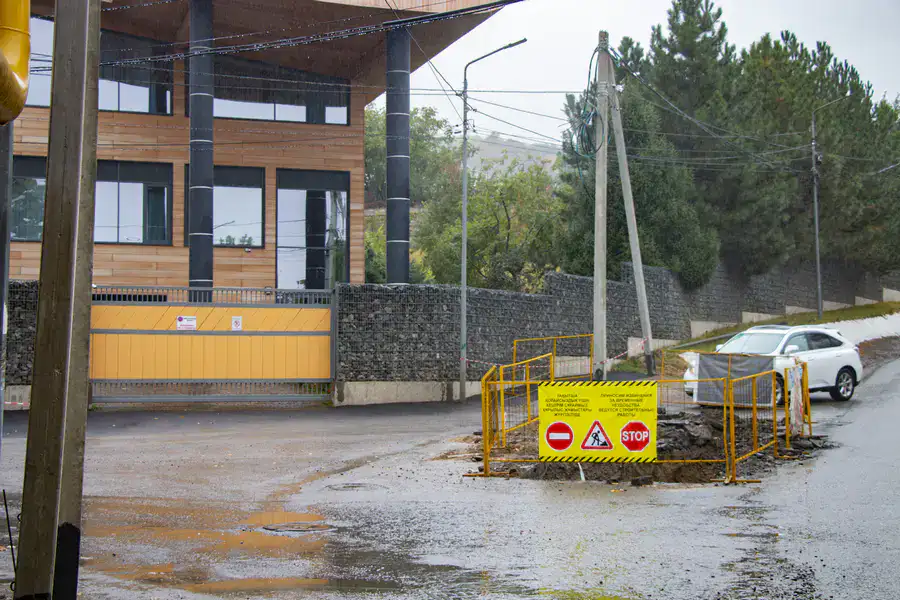На улице Ушкемпирова большая часть выкопанной траншеи уже залатана, однако проблемы сохраняются ближе к жилым комплексам Silver Hills и Remizovka, где остаются участки дороги без асфальта.