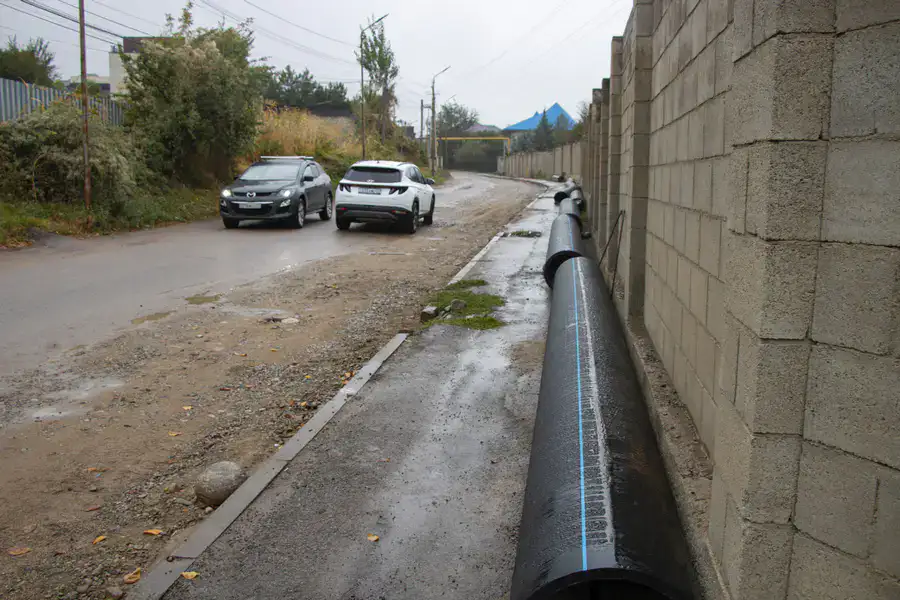 В алматинском микрорайоне Ерменсай уже полгода ведутся работы по прокладке труб из-за катастрофических проблем с водоснабжением. Работы начались в апреле и проводятся в экстренном темпе от проспекта Аль-Фараби вверх по улице Ушкемпирова до предгорных районов.