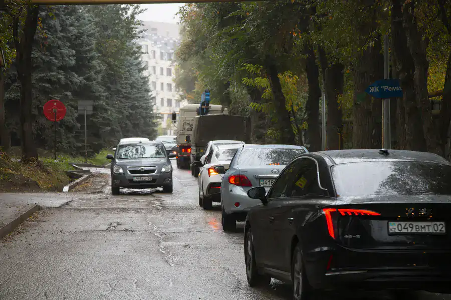 Корреспондент посетил микрорайон 1 октября, чтобы оценить состояние дорог во время дождя. Работы на улице Жаксылыка Ушкемпирова продолжаются, и на тротуаре с левой стороны лежат водопроводные трубы. Несмотря на дождь, рабочие продолжают прорезать асфальт.