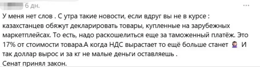 Когда Сенат ратифицировал поправки в договор о Таможенном кодексе, в социальных сетях казахстанцы начали высказывать возмущения по поводу того, что теперь им необходимо декларировать все товары, приобретённые за рубежом, вплоть до нижнего белья.