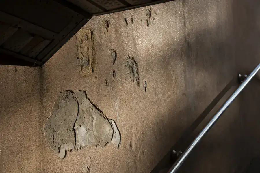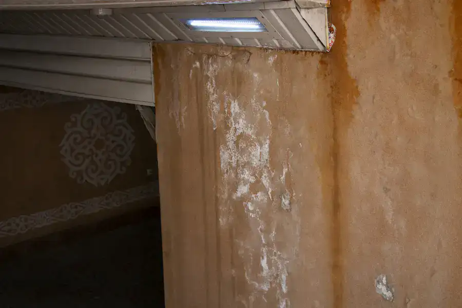 С потолка капает вода, штукатурка на стенах осыпалась из-за сырости. Возможно, изначально здесь некачественно сделали гидроизоляцию.