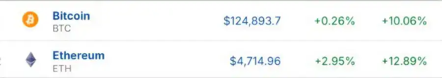 Курс Bitcoin (BTC) увеличился на 0,26 процента, а Ethereum (ETH) - на 2,95 процента, достигнув 4 714,96 доллара за одну монету. Это происходит на фоне финансовой неопределённости в США и роста институциональных инвестиций в криптовалюты.