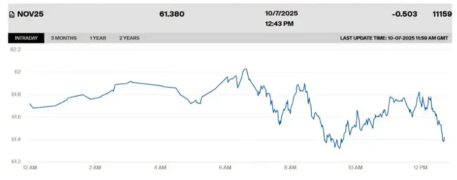 Стоимость ноябрьских фьючерсов на нефть марки WTI уменьшилась на 0,5 процента и составила 61,38 доллара за баррель.
