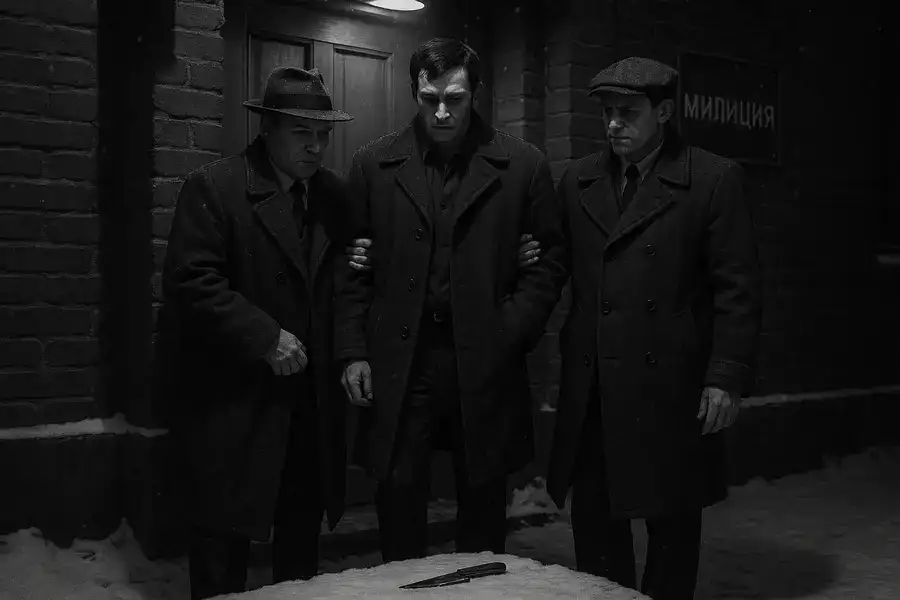 Уже у самых дверей отдела, поняв, что шанса нанести удар не будет, он попытался незаметно выбросить нож в снег. Но клинок предательски зацепился за подкладку рукава, выскользнул и с грохотом упал прямо под ноги оперативникам.