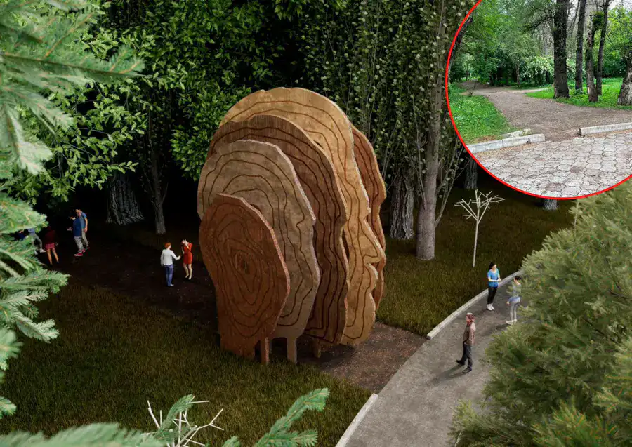 У южного входа со стороны проспекта Суюнбая разместится инсталляция, посвящённая Эдуарду Бауму — основателю рощи. Она выполнена из отдельных фрагментов, которые под определённым углом складываются в портрет учёного. Вторая композиция — "Годичные кольца", у входа со стороны улицы Сейфуллина, символизирует время, рост и непрерывное развитие.